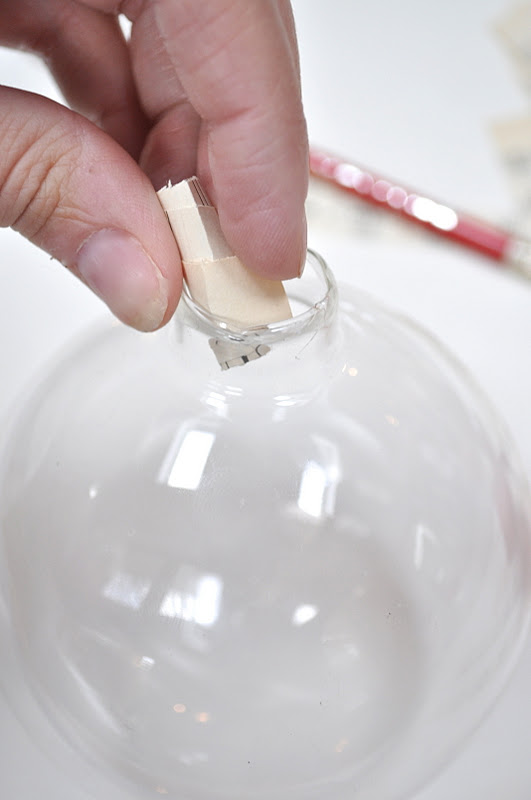 3. Remove the top of the glass ornament and insert the curl in the top.