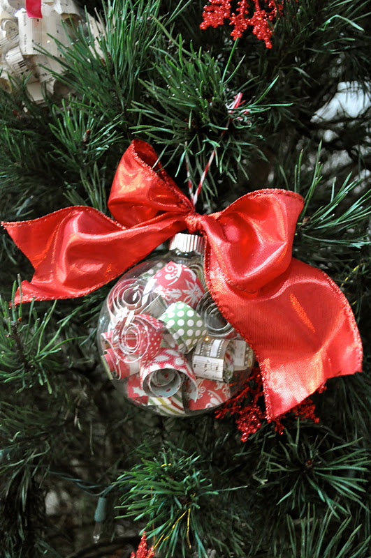 Here’s the same ornament with patterned scrapbook paper curls. So festive!